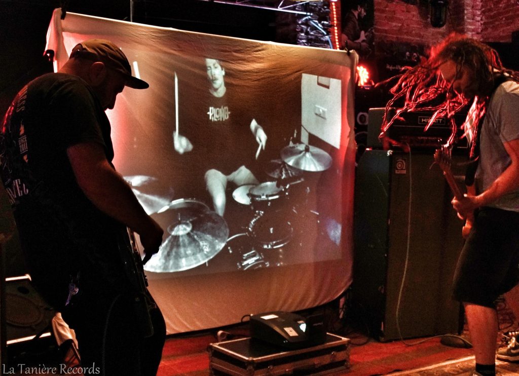 Je n’ai rien compris à ce concert…Je suis arrivé 5 minutes en retard et j’ai vu Anthony Laguerre derrière la batterie. Je l’avais salué dans la salle mais je ne savais pas qu’il allait jouer avec eux ce soir. Je « »« l’avais vu en vidéo » » » avec eux lors de leur précédent concert mais là ce soir ce fût une vraie surprise pour moi. Il était là en chair et en os derrière les fûts. Je dois dire que ça sonnait hyper bien puis au bout du 2ème morceau le concert de (we are)Plomb s’arrête. Le film qui devait tourner avec les différents batteurs-invités ne fonctionnait pas (regardez la vidéo ci-dessous vous comprendrez mieux ce que je raconte). Gros gros plantage donc, le groupe annonce la fin du concert et s’amuse en disant que de toute façon il n’était pas prévu au départ. Dommage c’était bien, puis plus rien. Une véritable douche froide à la surprise générale !!! Un concert-éclair en quelques sortes avec beaucoup de …. dans l’aile et beaucoup de bonne humeur !!!